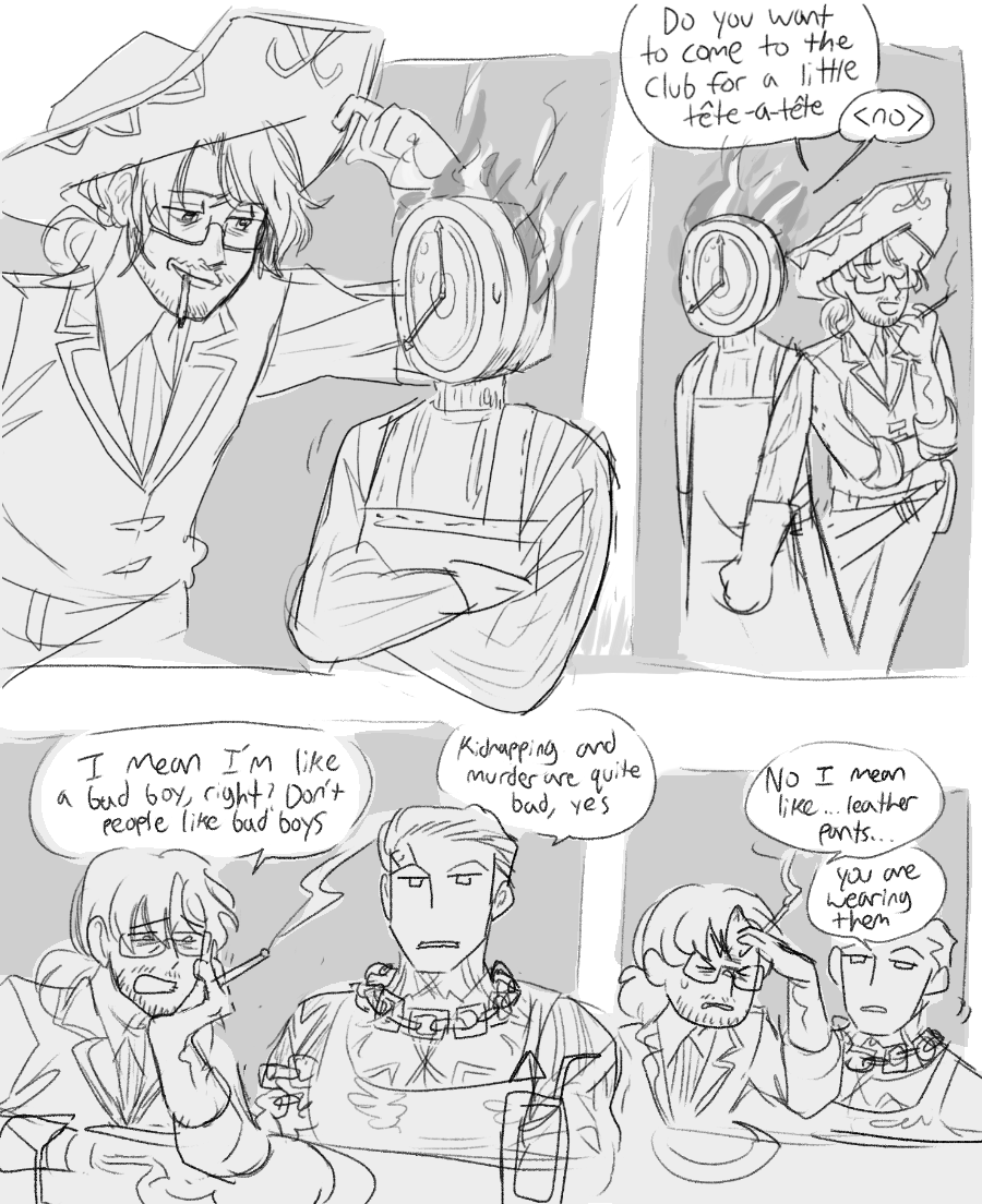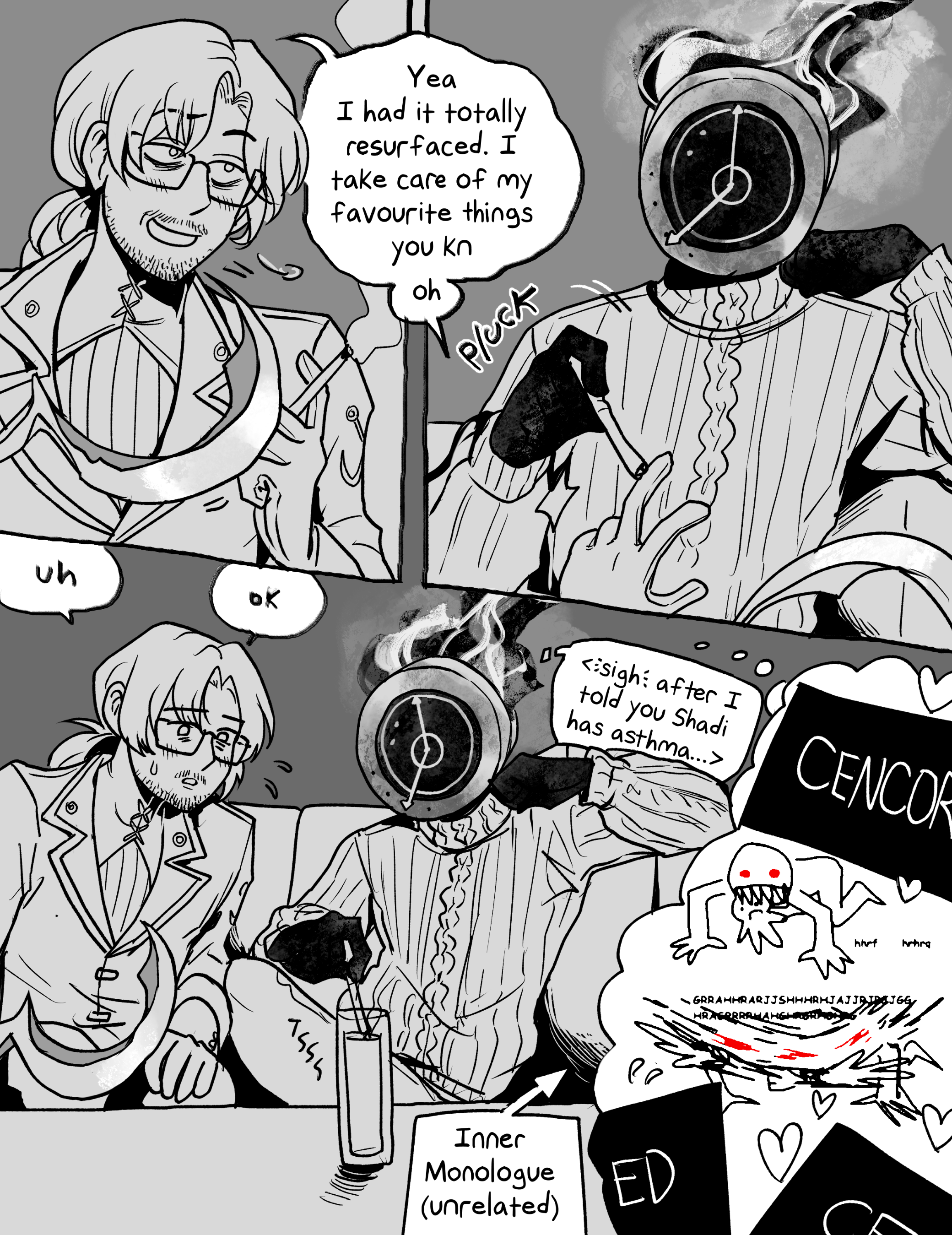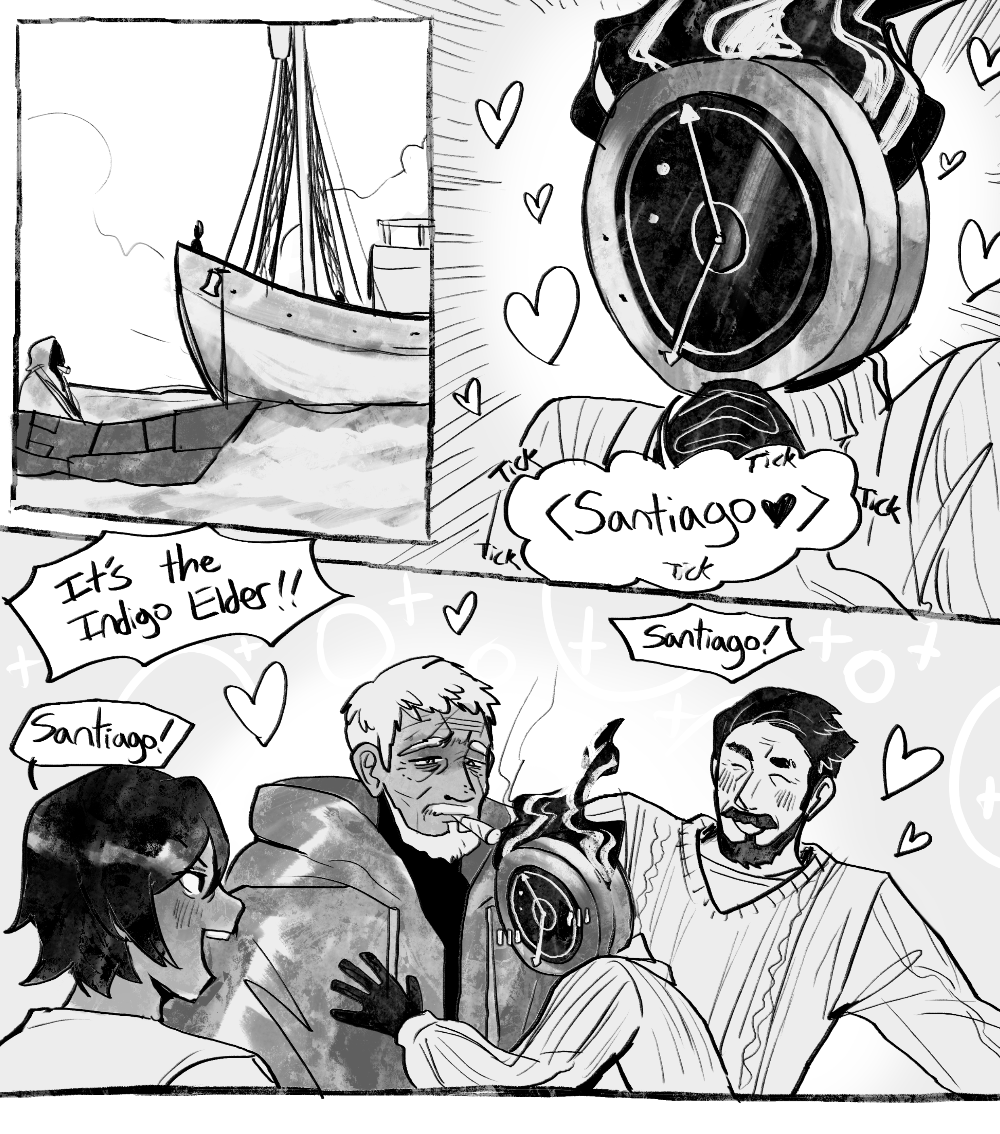 After manifesting an EGO in the fallout of a disastrous voyage, Dante has become a whaling ship captain who exclusively hires the paypigs the Hook Pirates exploit with their first mate Adino (OC) and Master-at-arms Outis. They grapple with trying to remain kind when dealing with the worst sides of society, and also waffle on the obvious crush Hook Pirate First Mate Gregor has on them.